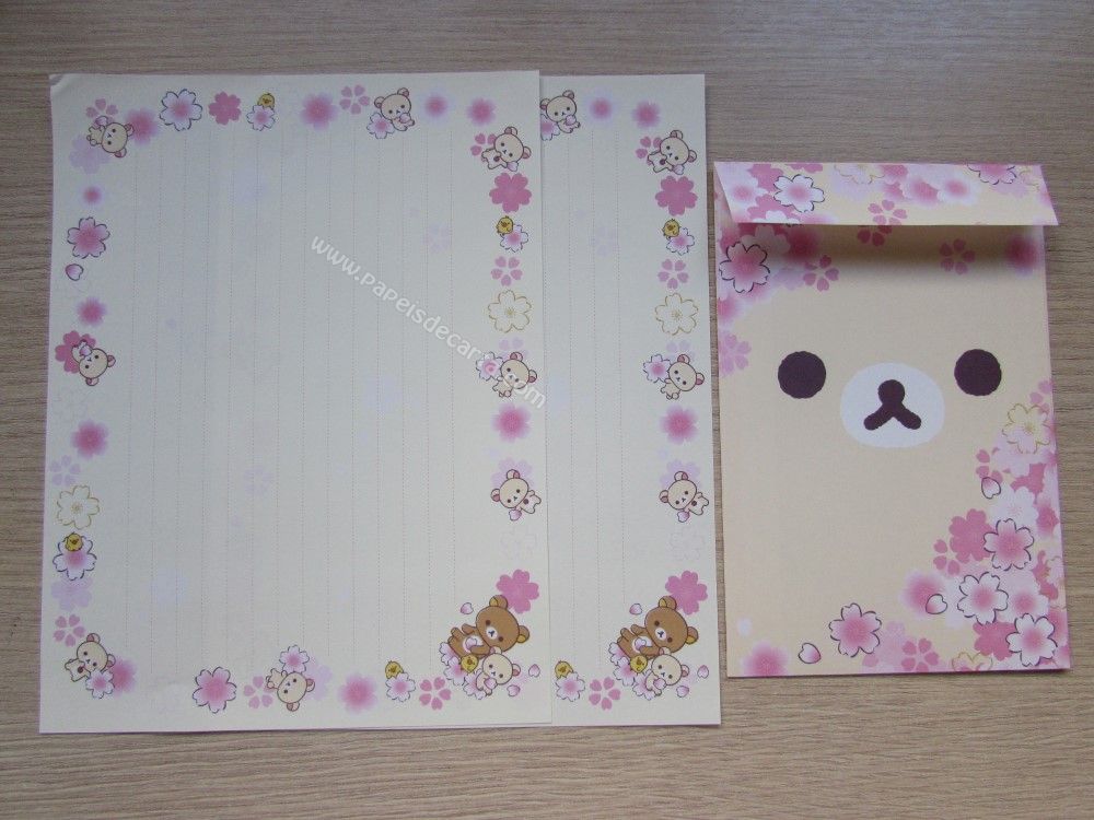 Conjunto de papel de carta importado, com 2 folhas iguais e 1 envelope da coleção Rilakkuma, da San-X.
