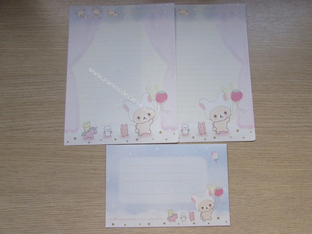 Conjunto de papel de carta importado, com 2 folhas iguais e 1 envelope da coleção Rilakkuma, da San-X.
