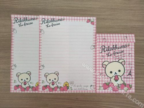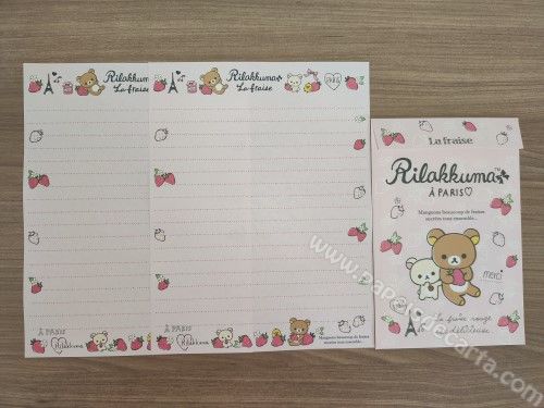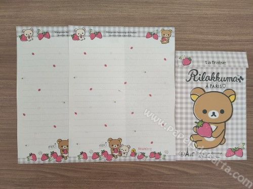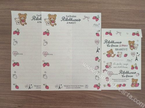 Lote com 4 Conjuntos de papel de carta importado, com 2 folhas iguais e 1 envelope cada conjunto, da coleção Rilakkuma, da San-X.