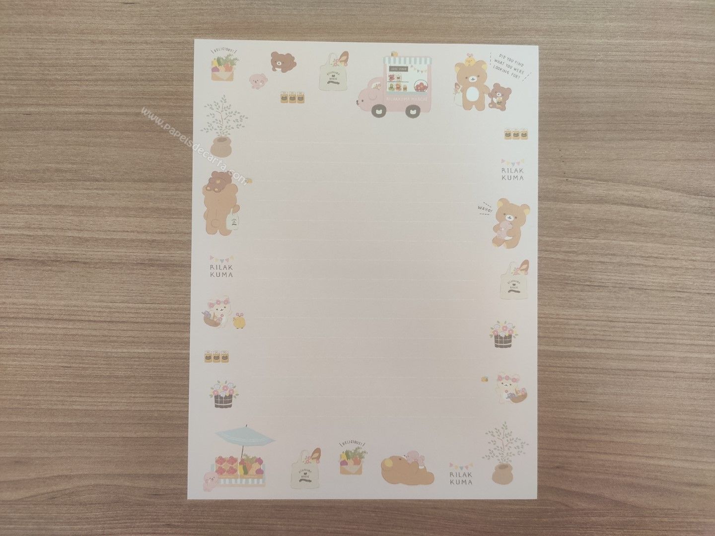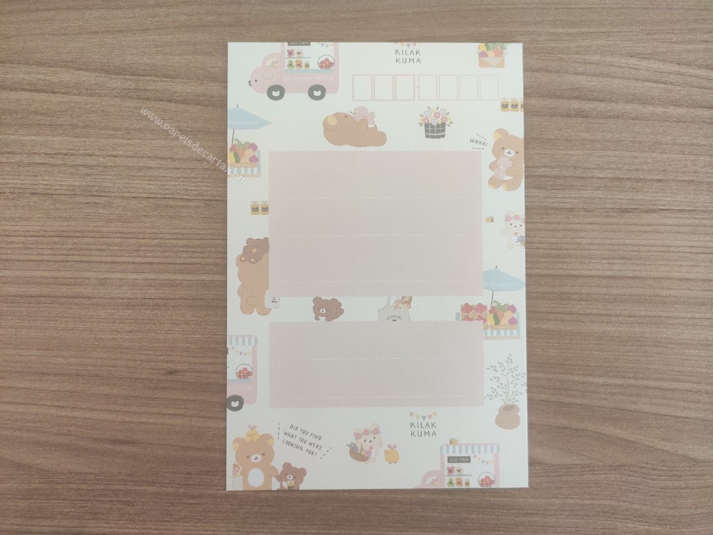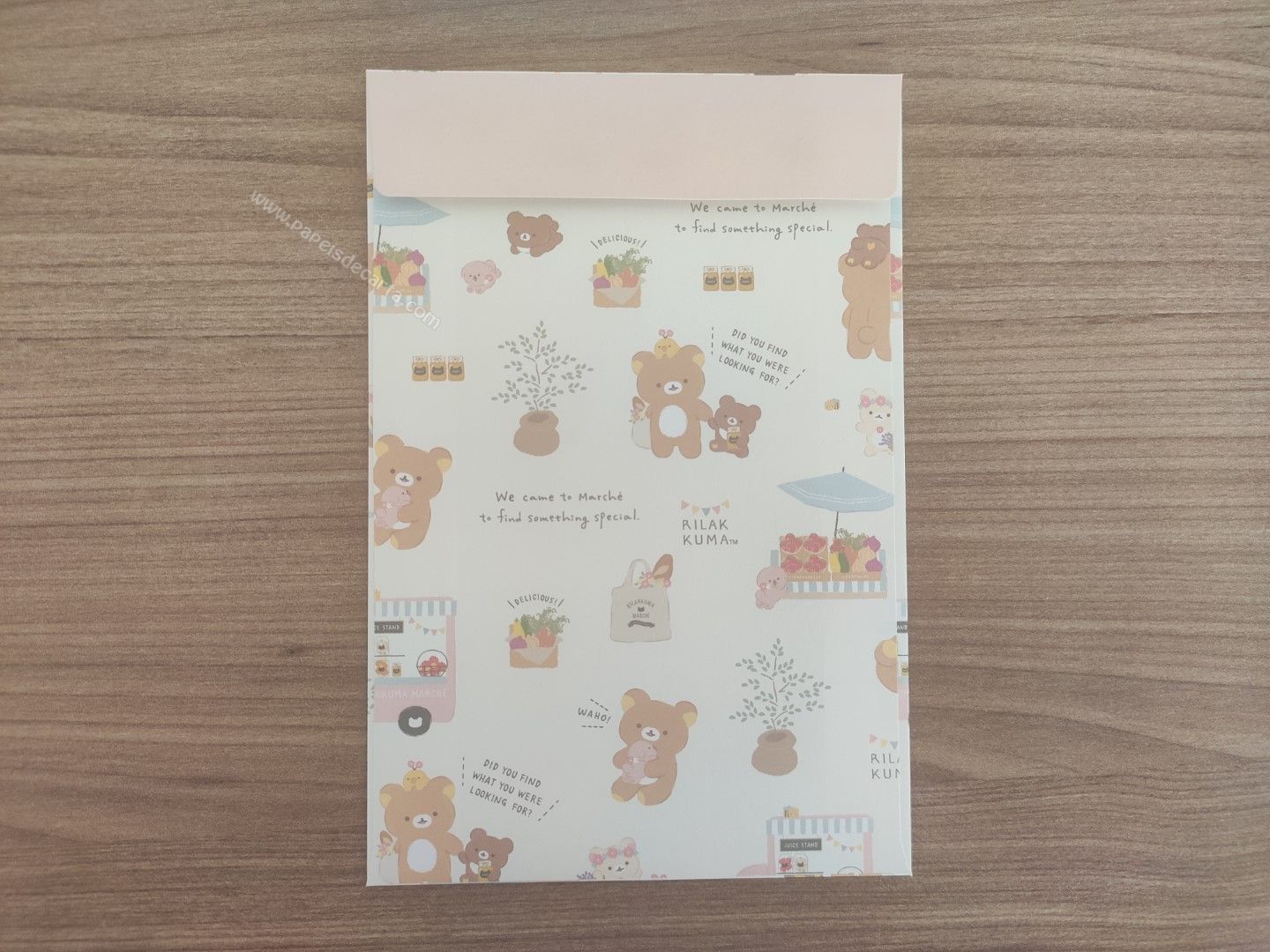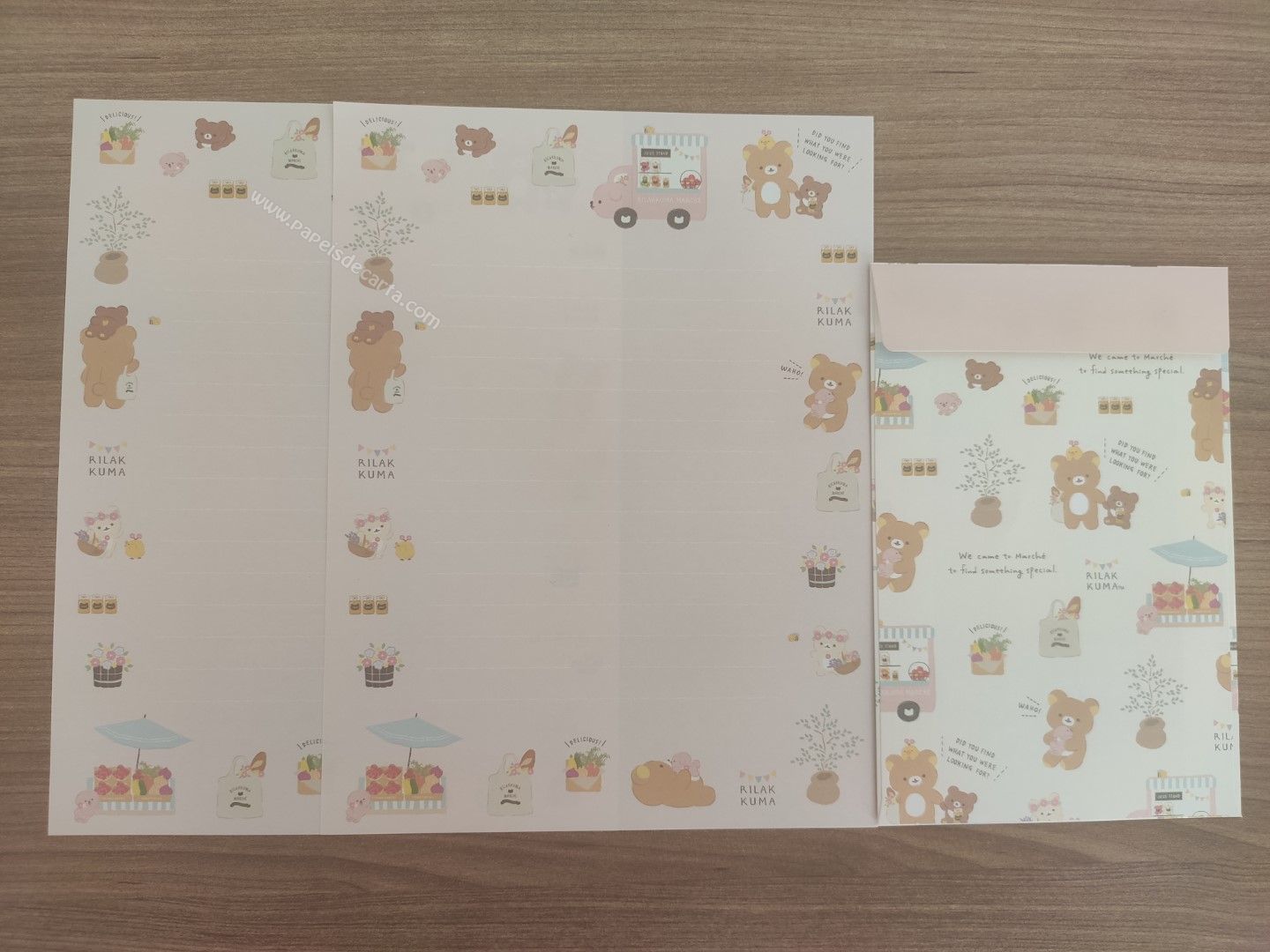Conjunto de papel de carta importado, com 2 folhas iguais e 1 envelope da coleção Rilakkuma, da San-X.