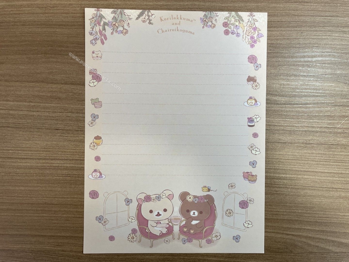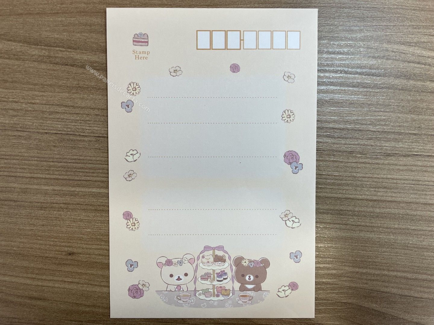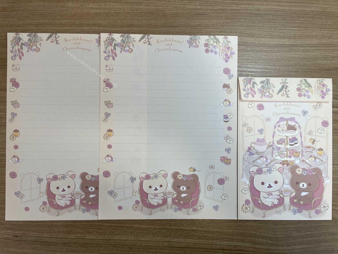 Conjunto de papel de carta importado, com 2 folhas e 1 envelope da coleção Rilakkuma, da San-X.