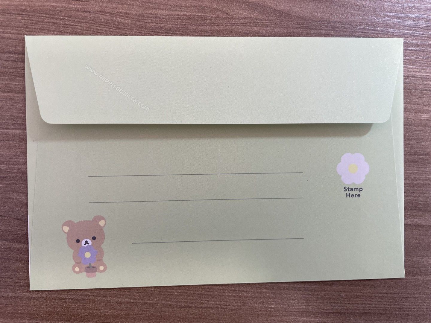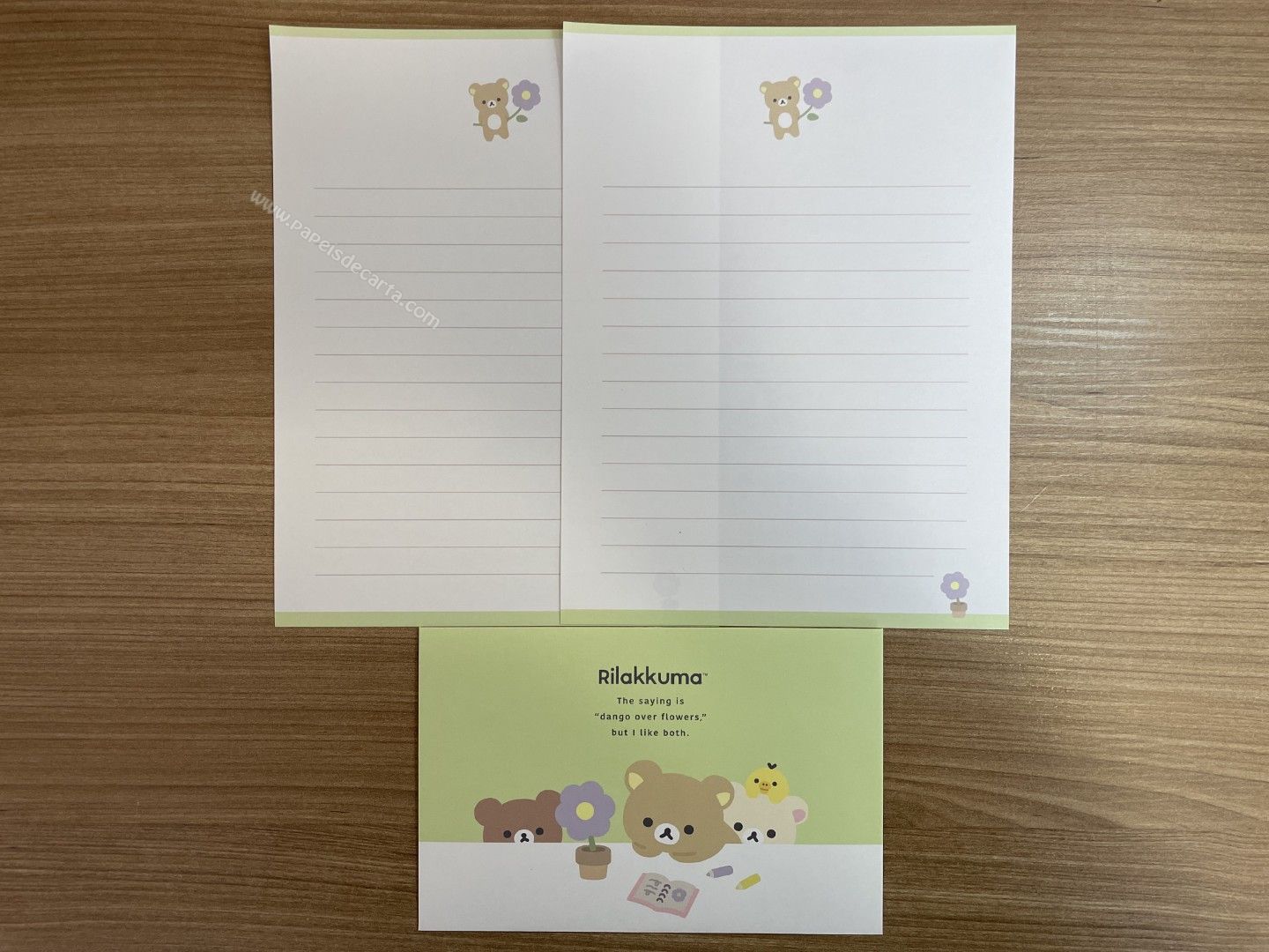 Conjunto de papel de carta importado, com 2 folhas e 1 envelope da coleção Rilakkuma, da San-X.