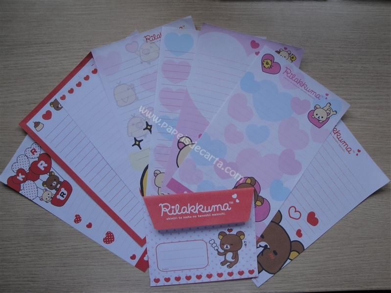 Conjunto importado, de papel de carta com 2 folhas diferentes e 1 envelope do Rilakkuma.