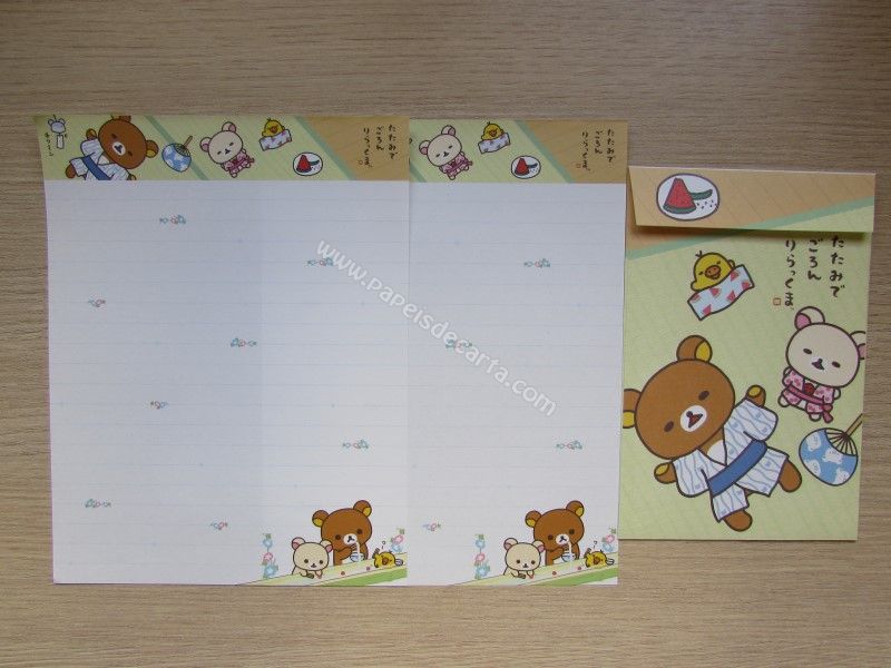 Conjunto de papel de carta importado, com 2 folhas iguais e 1 envelope da coleção Rilakkuma, da San-X.