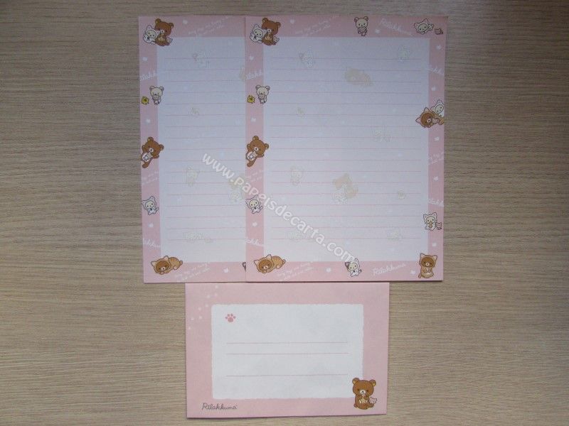 Conjunto de papel de carta importado, com 2 folhas iguais e 1 envelope da coleção Rilakkuma, da San-X.