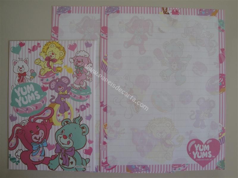 Conjunto importado, de papel de carta com 2 folhas iguais e 1 envelope do Yum Yums.