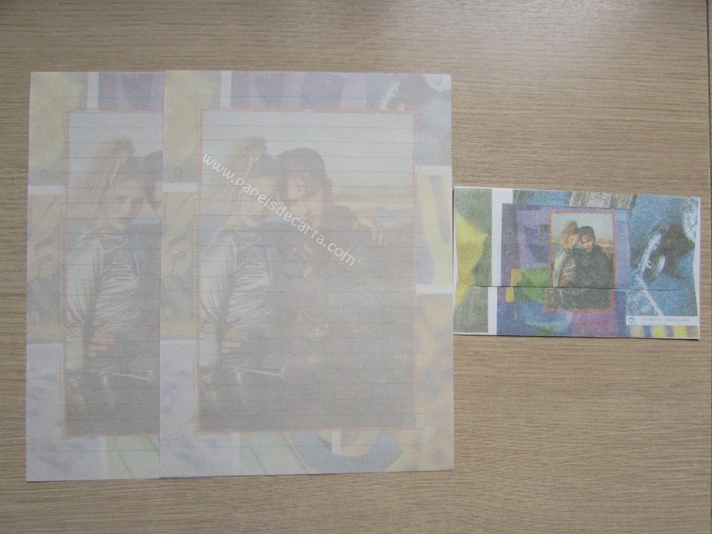 Papel de carta importado, clarinho, com cheirinho, tamanho um pouco maior que o médio, sendo 2 folhas iguais e 1 envelope.