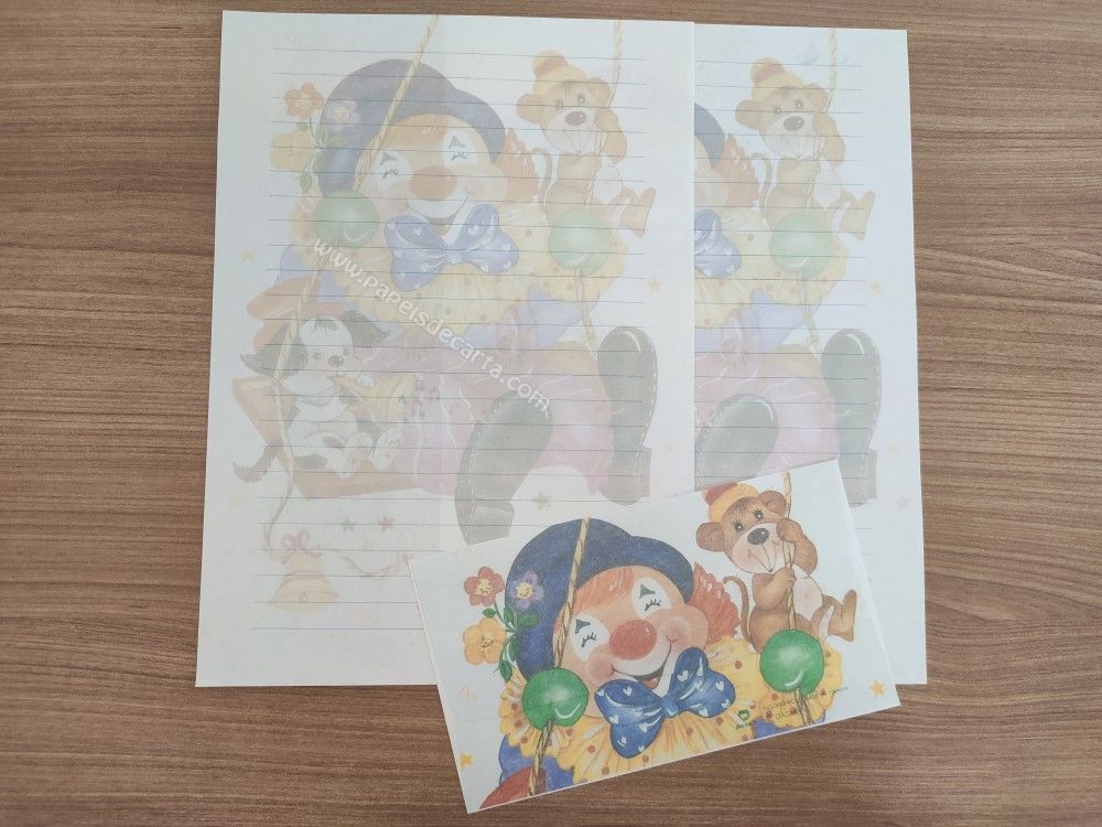 Papel de carta importado, clarinho, com cheirinho, tamanho um pouco maior que o médio, sendo 2 folhas iguais e 1 envelope.