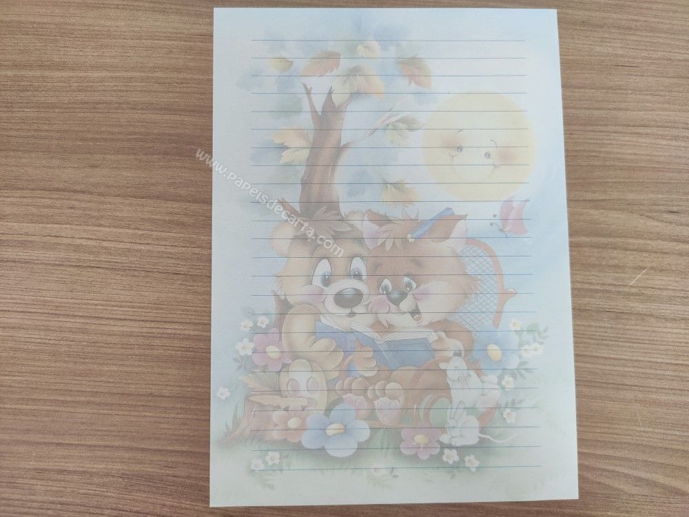 Papel de carta importado, clarinho, com cheirinho, tamanho um pouco maior que o médio, sendo 2 folhas iguais e 1 envelope.