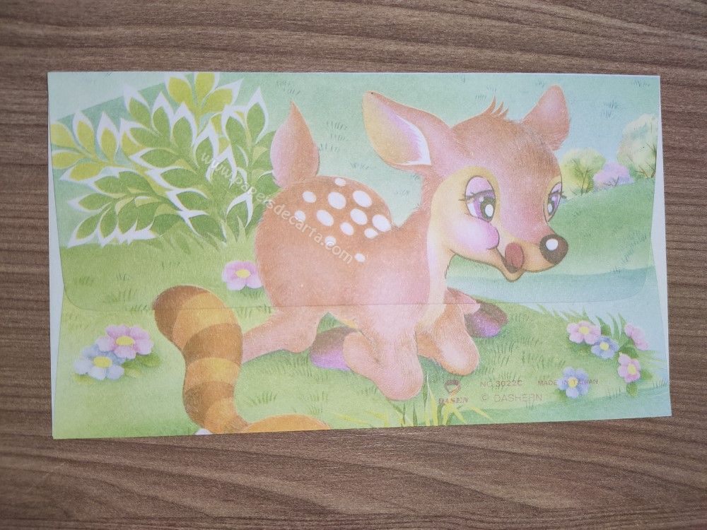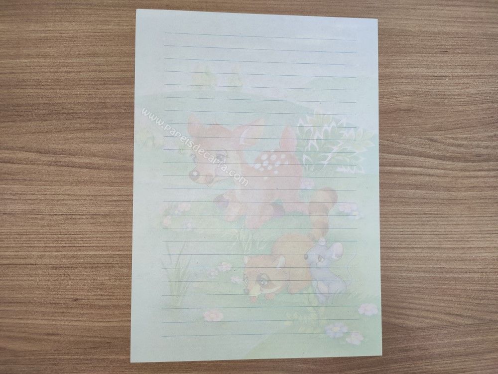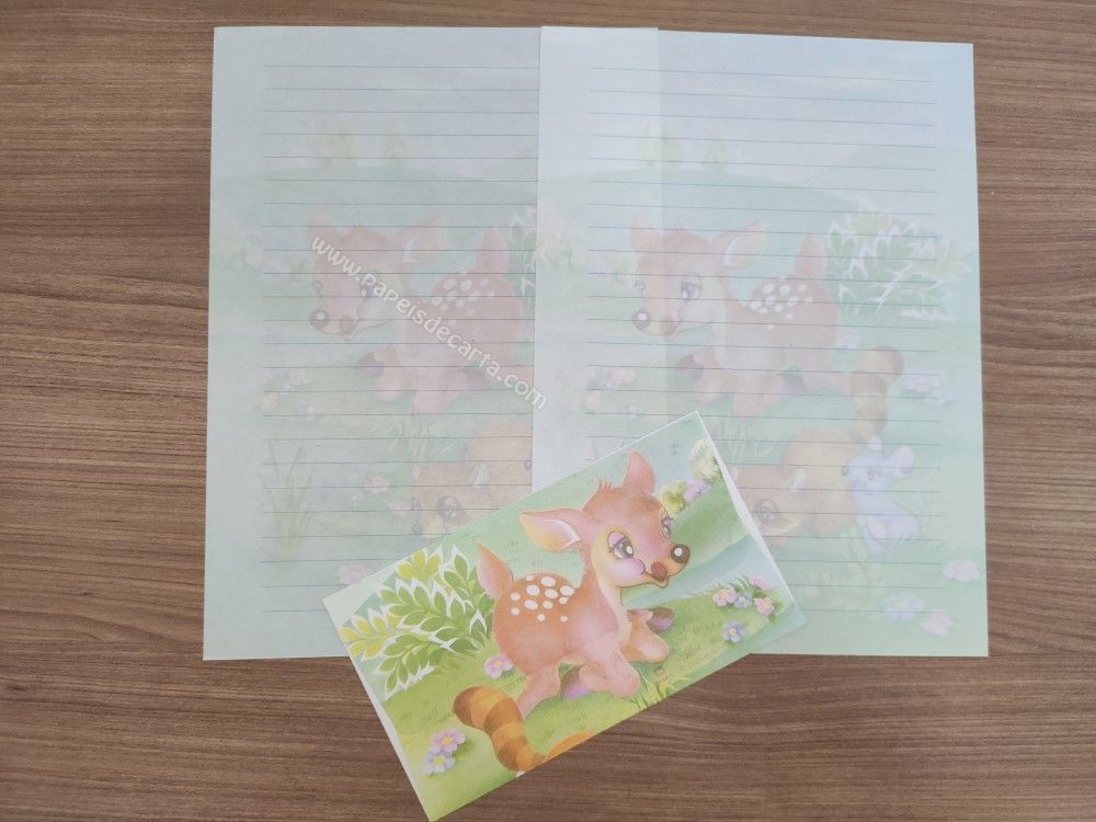 Papel de carta importado, clarinho, com cheirinho, tamanho um pouco maior que o médio, sendo 2 folhas iguais e 1 envelope.
