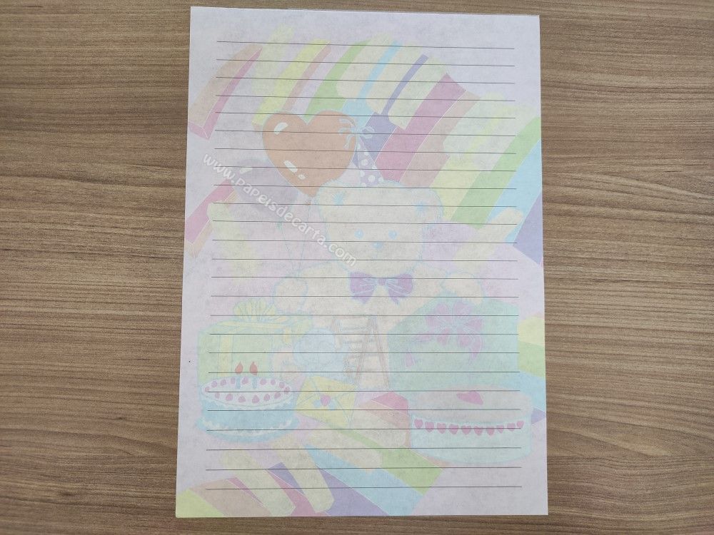Papel de carta importado, clarinho, com cheirinho, tamanho um pouco maior que o médio, sendo 2 folhas iguais e 1 envelope.