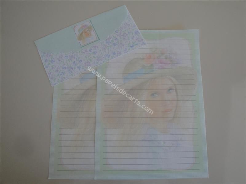 Conjunto importado, de papel de carta com 2 folhas iguais e 1 envelope de papéis clarinhos e perfumados.