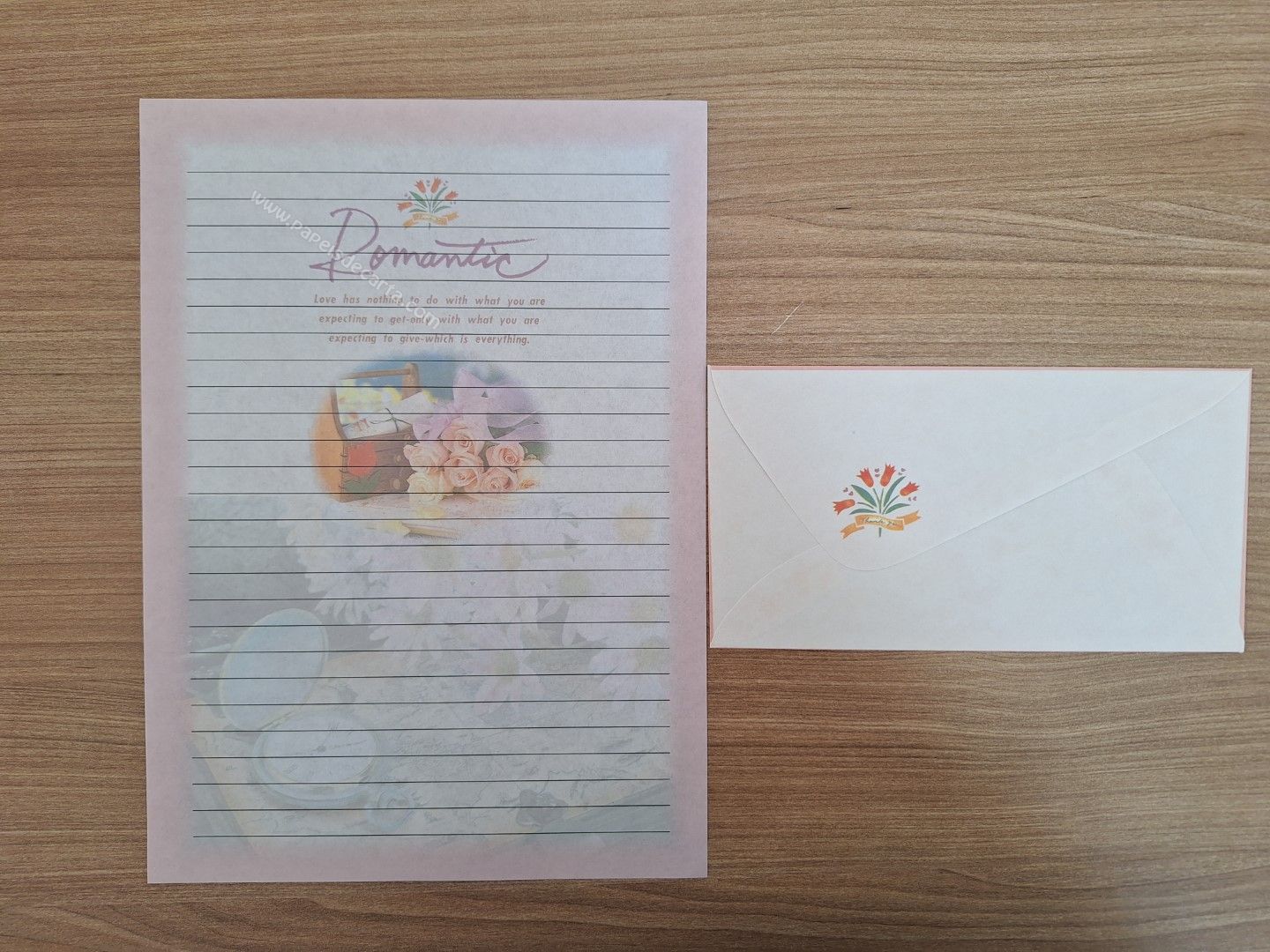 Conjunto importado, de papel de carta antigo, com 1 folha e 1 envelope.