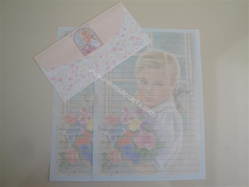 Conjunto importado, de papel de carta com 2 folhas iguais e 1 envelope de papéis clarinhos e perfumados.