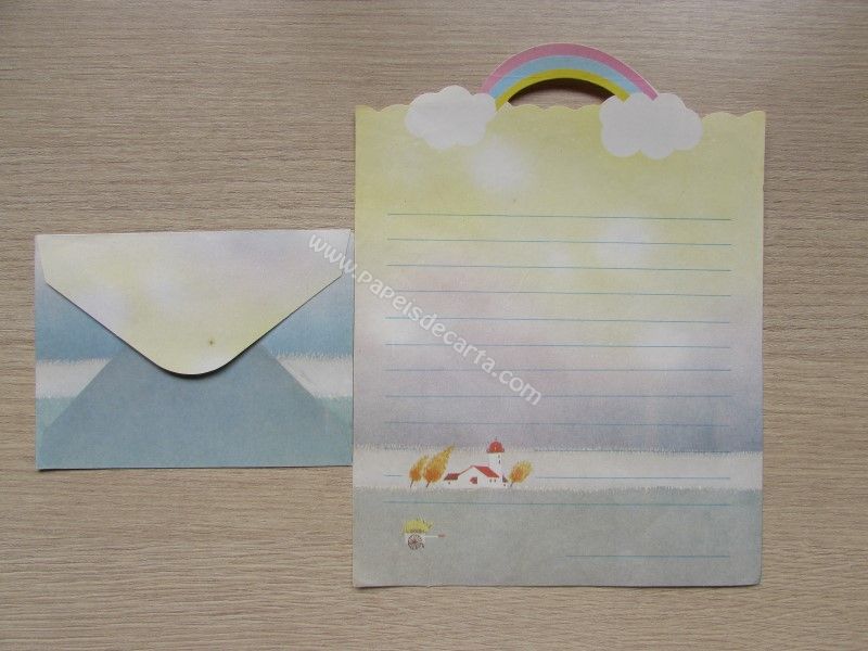 Conjunto de papel de carta antigo com 1 folha e 1 envelope.