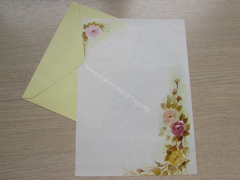 Conjunto de papel de carta antigo com 1 folha e 1 envelope. * O papel está meio amassado e com marca de dobra na parte de baixo. Ver foto.*