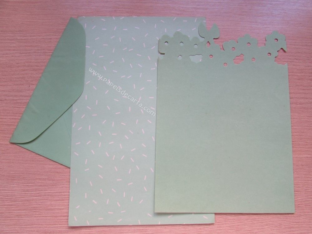 Conjunto de papel de carta antigo com 2 folhas e 1 envelope.