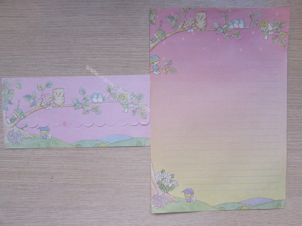 Conjunto de papel de carta antigo com 1 folha e 1 envelope.