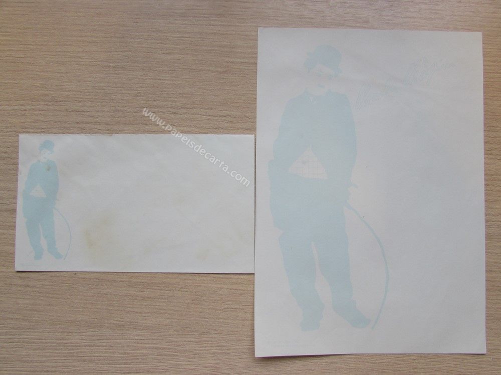 Conjunto de papel de carta antigo com 1 folha e 1 envelope.