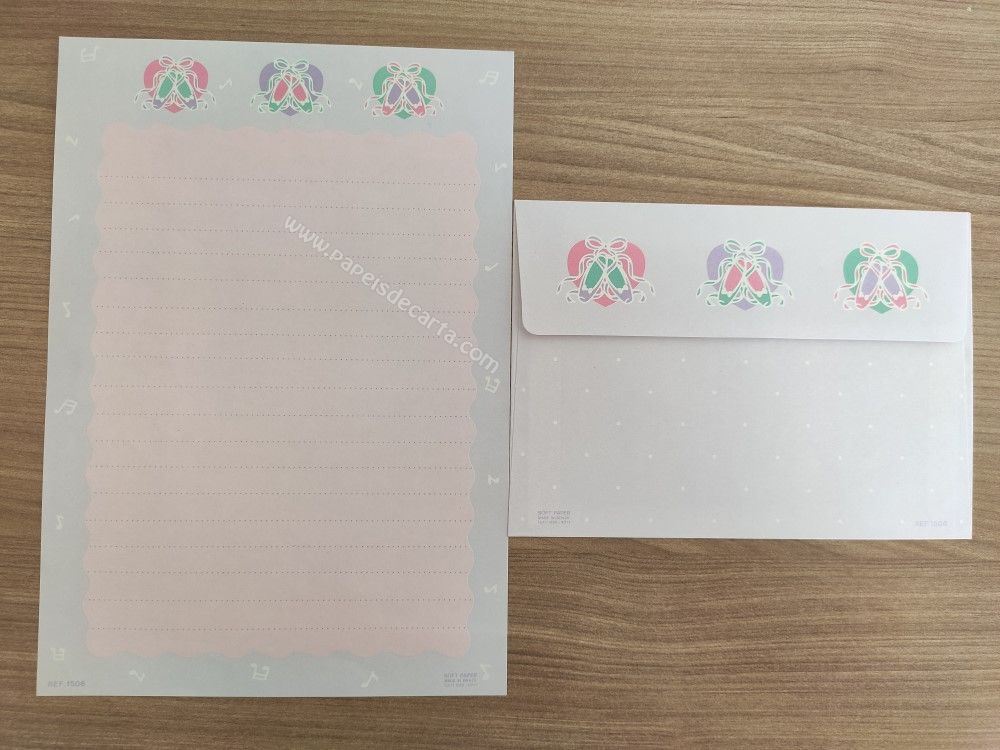 Conjunto de papel de carta antigo com 1 folha e 1 envelope.