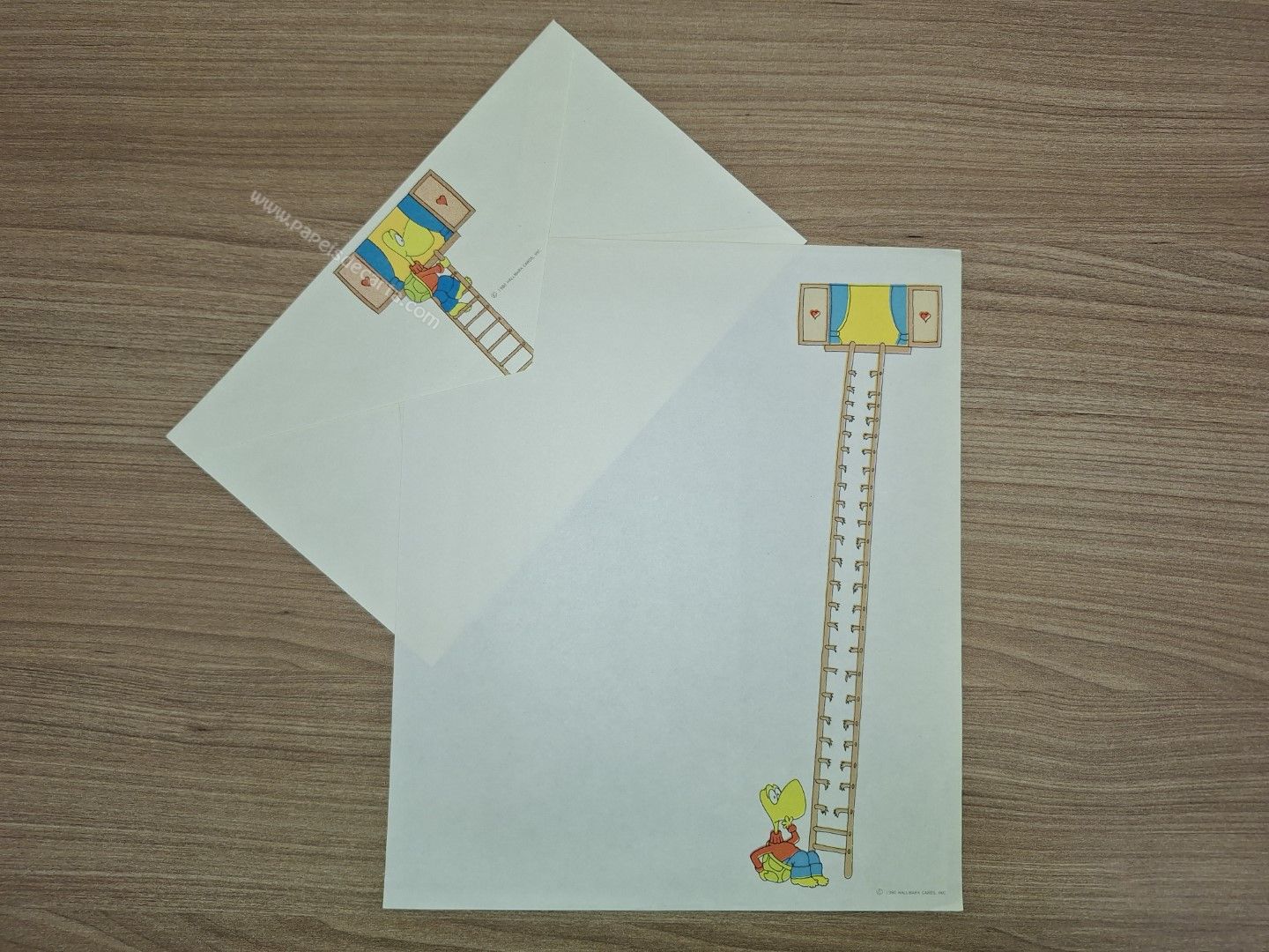 Conjunto de papel de carta antigo com 1 folha e 1 envelope.