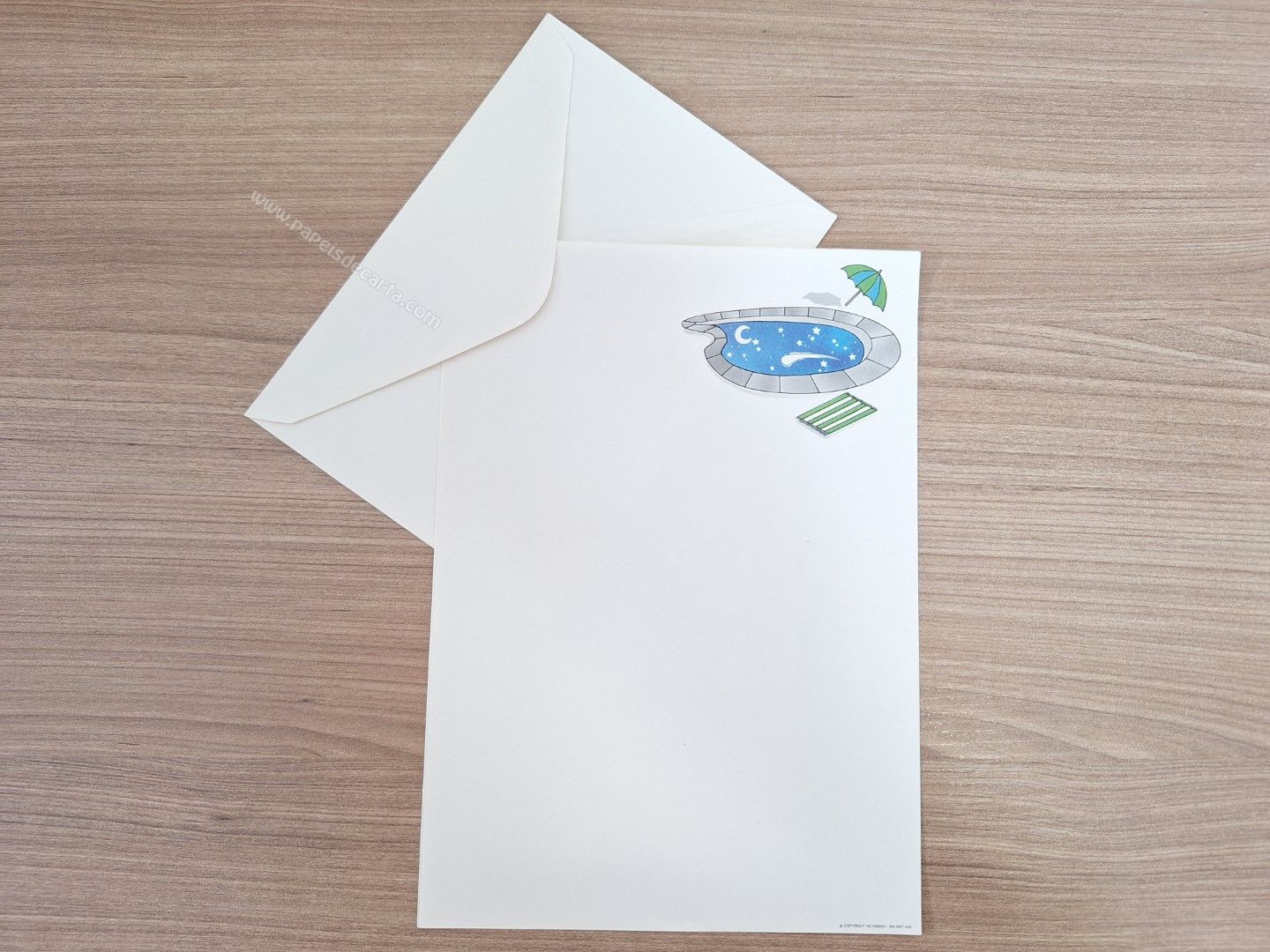 Conjunto de papel de carta antigo com 1 folha e 1 envelope.