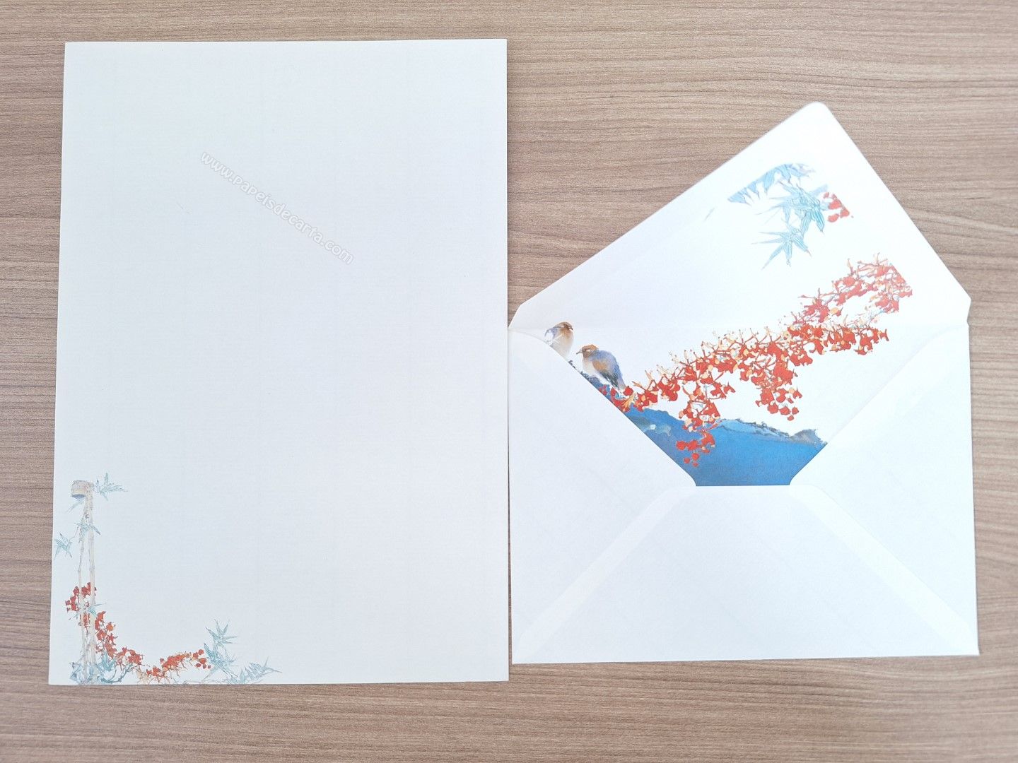 Conjunto de papel de carta antigo com 1 folha e 1 envelope.