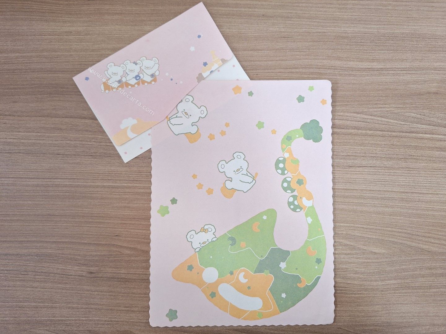 Conjunto de papel de carta antigo com 1 folha e 1 envelope.
