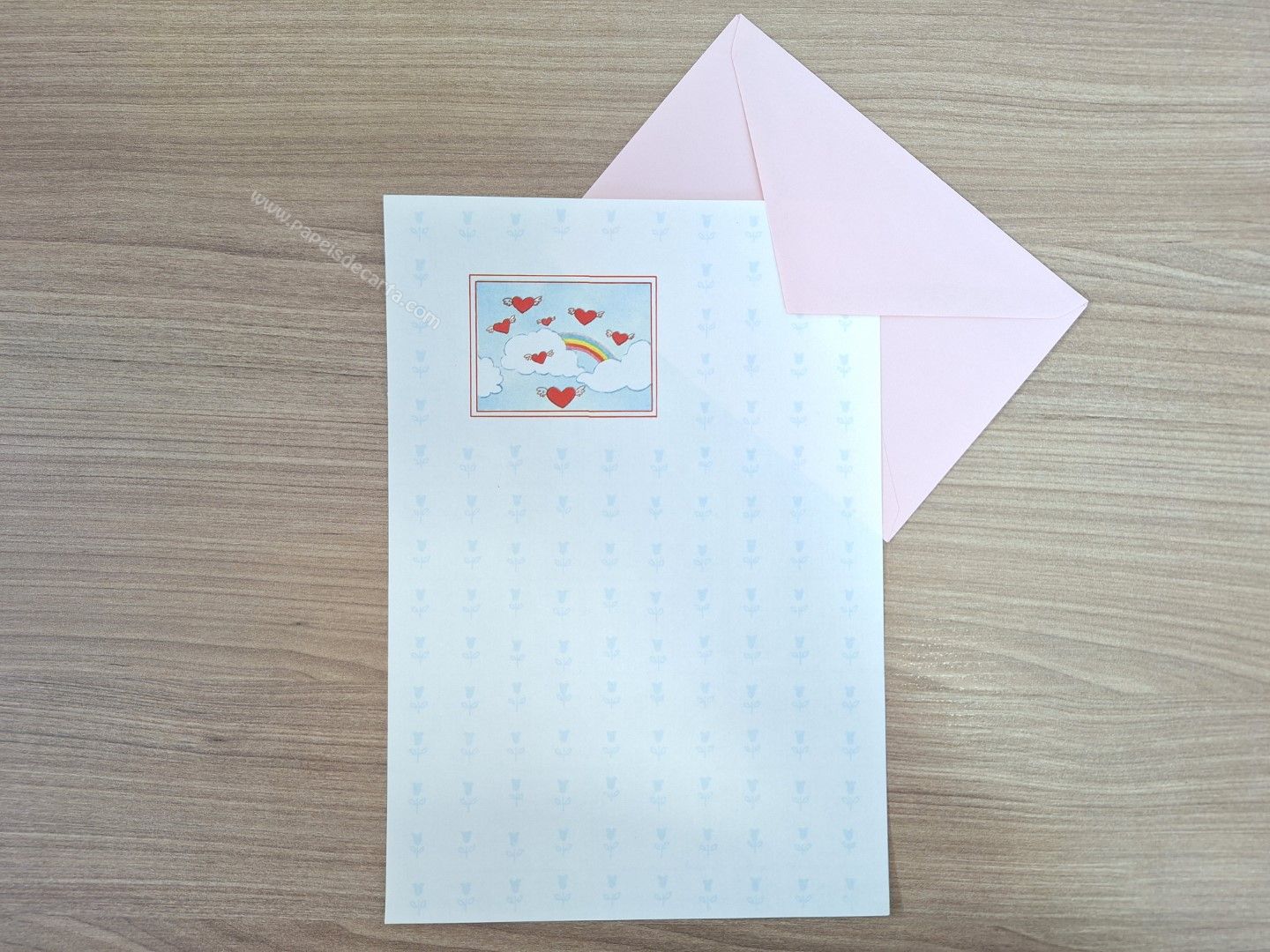Conjunto de papel de carta antigo com 1 folha e 1 envelope.