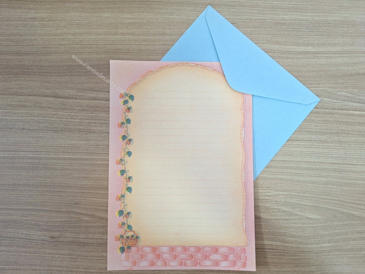Conjunto de papel de carta antigo com 1 folha e 1 envelope.