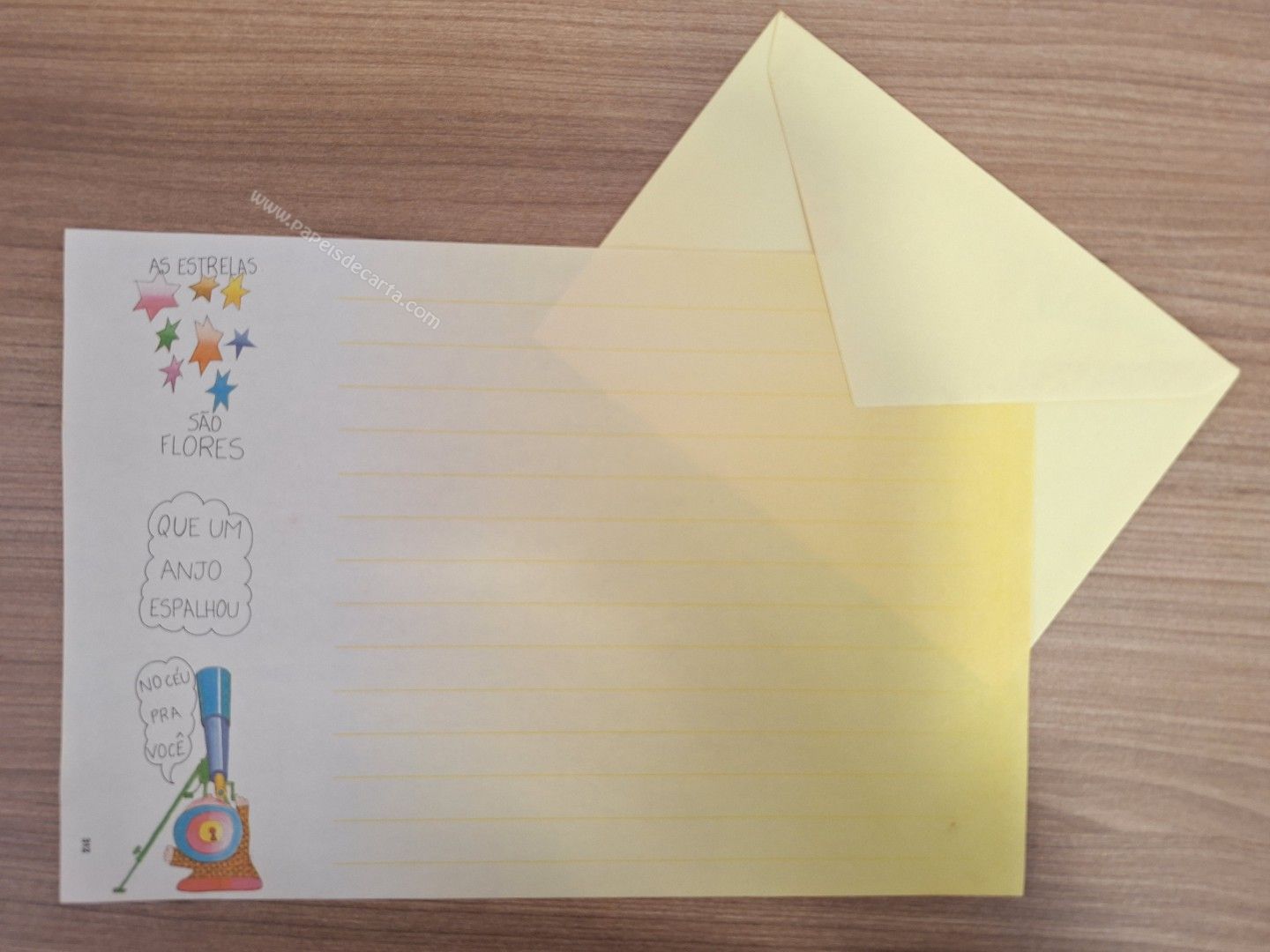 Conjunto de papel de carta antigo com 1 folha e 1 envelope.