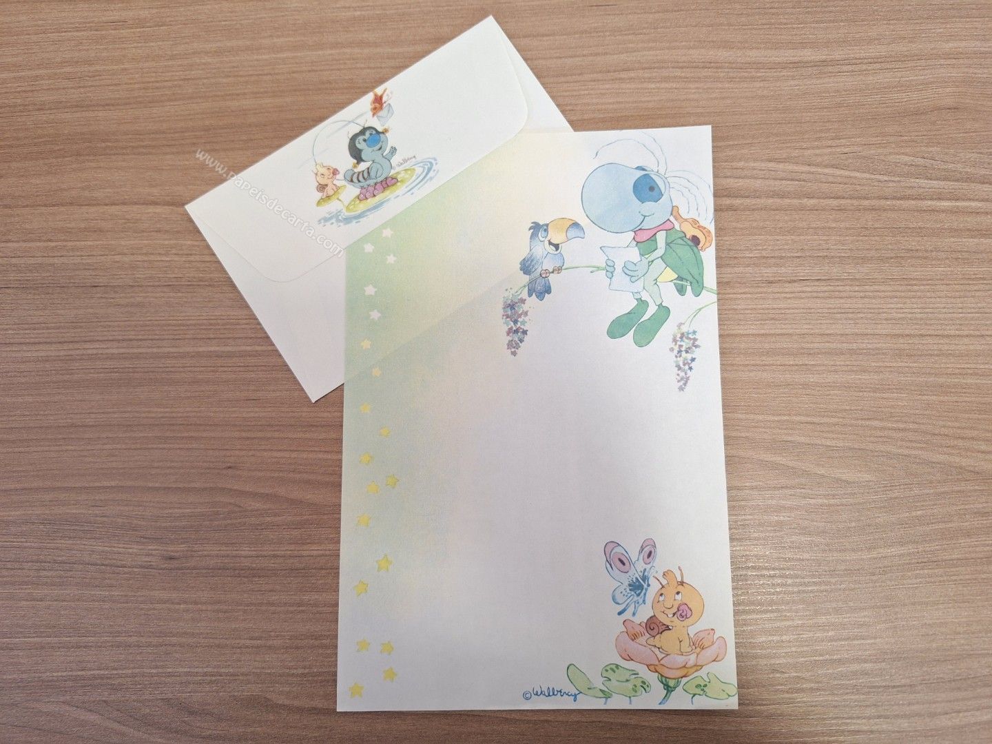 Conjunto de papel de carta antigo com 1 folha e 1 envelope.