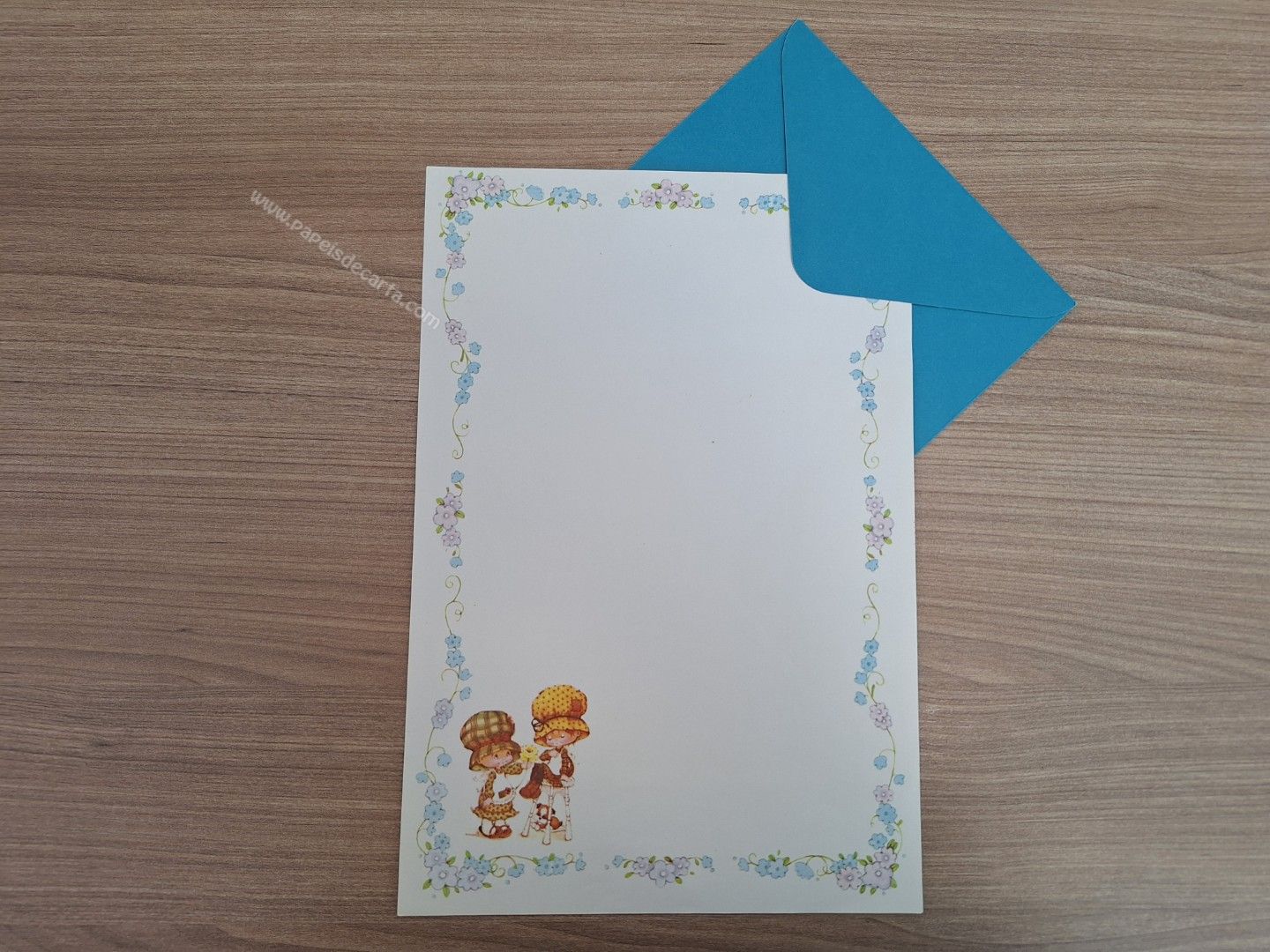 Conjunto de papel de carta antigo com 1 folha e 1 envelope.