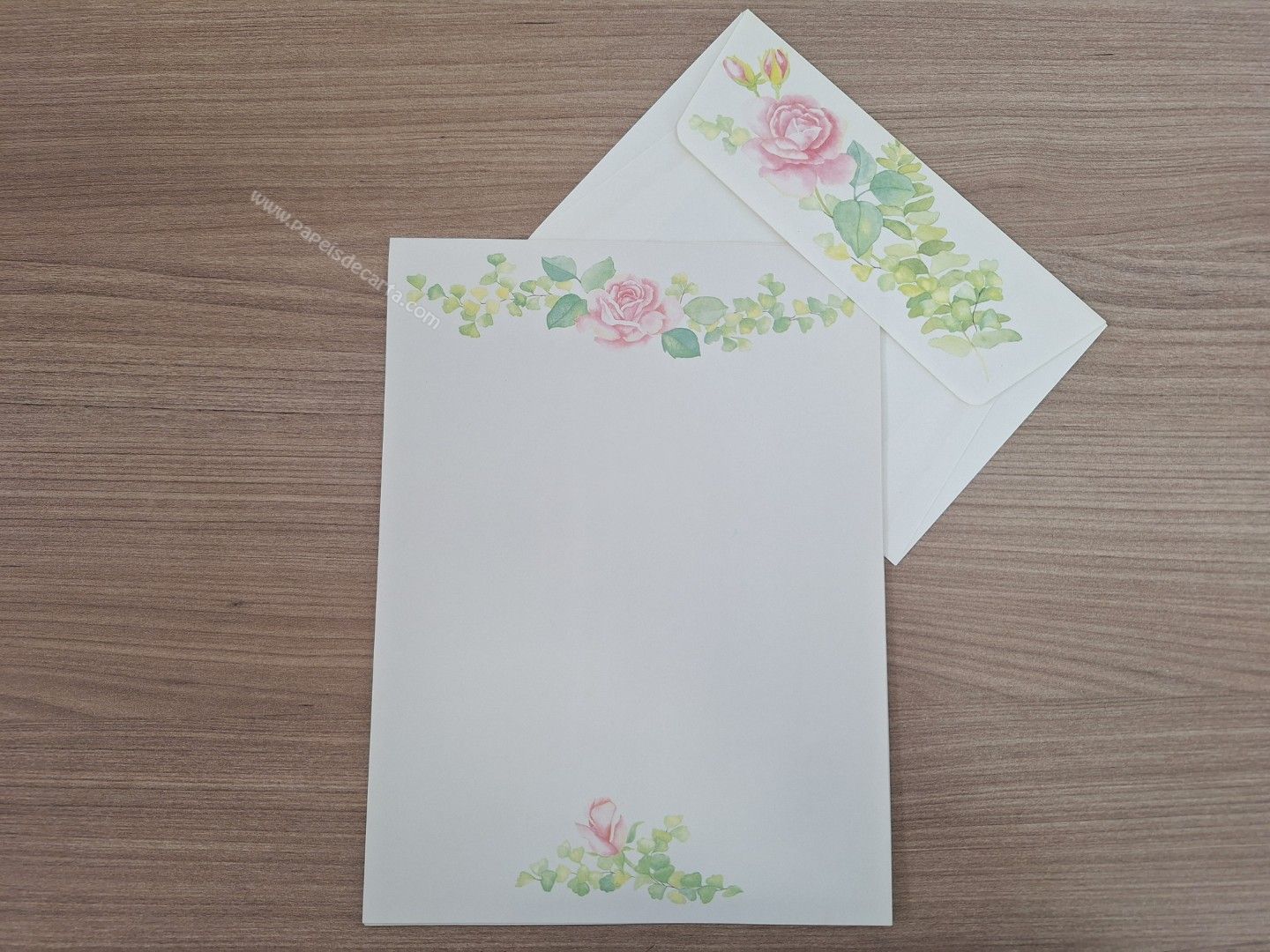 Conjunto de papel de carta antigo com 1 folha e 1 envelope.