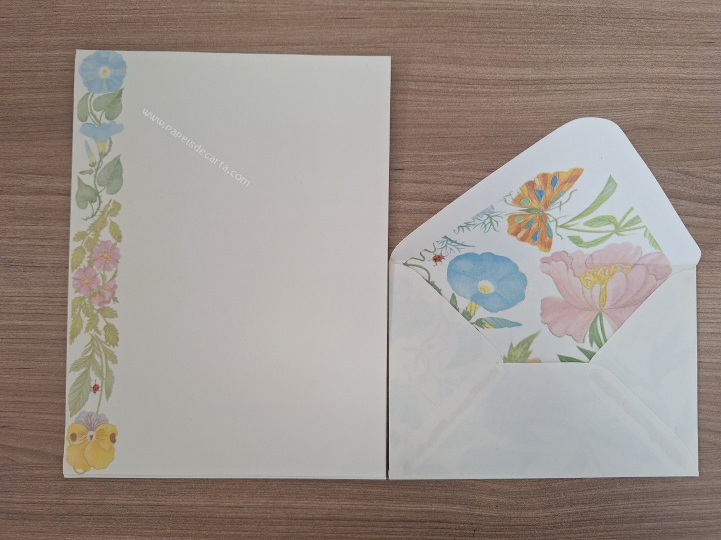 Conjunto de papel de carta antigo com 1 folha e 1 envelope.