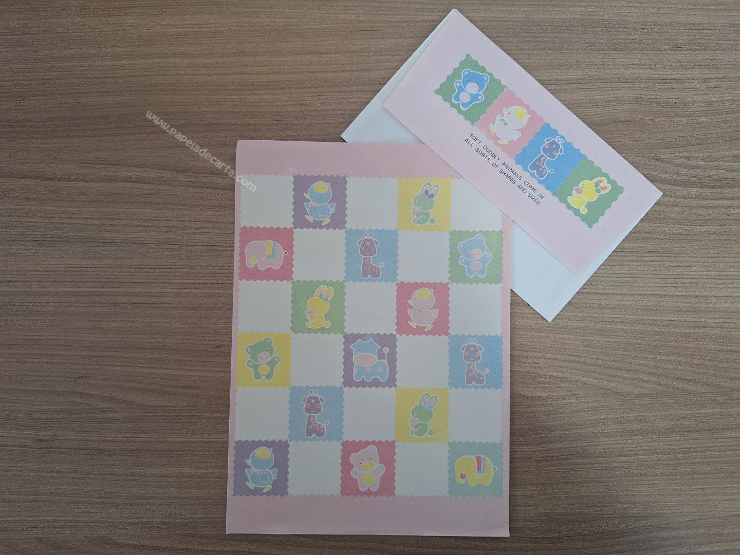 Conjunto de papel de carta antigo com 1 folha e 1 envelope.
