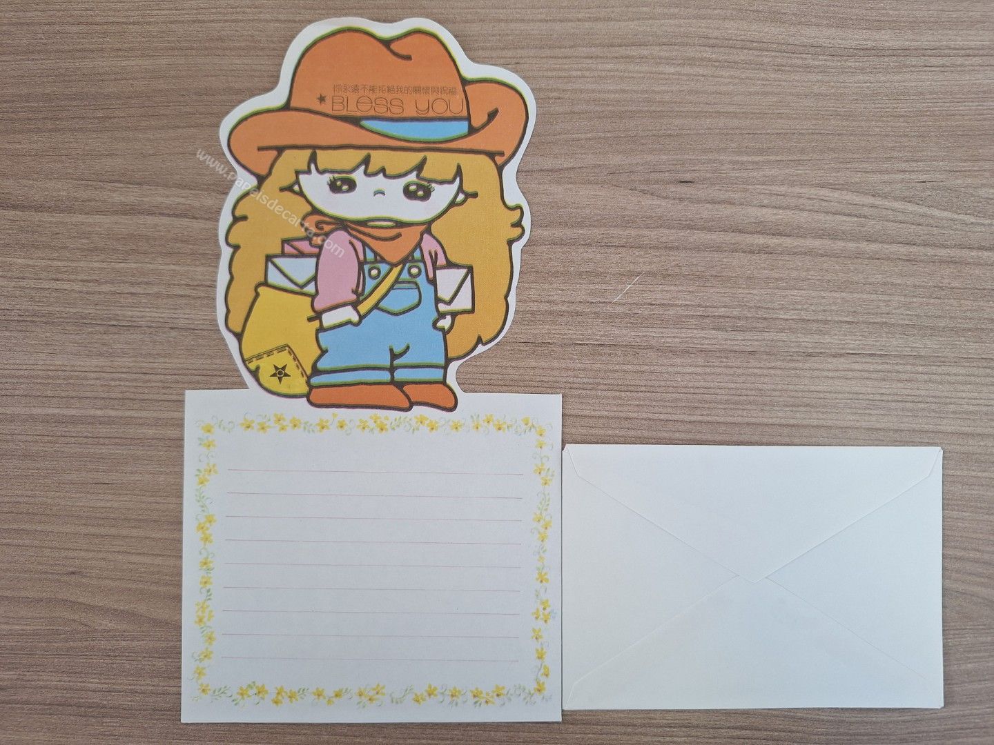 Conjunto de papel de carta antigo com 1 folha e 1 envelope.