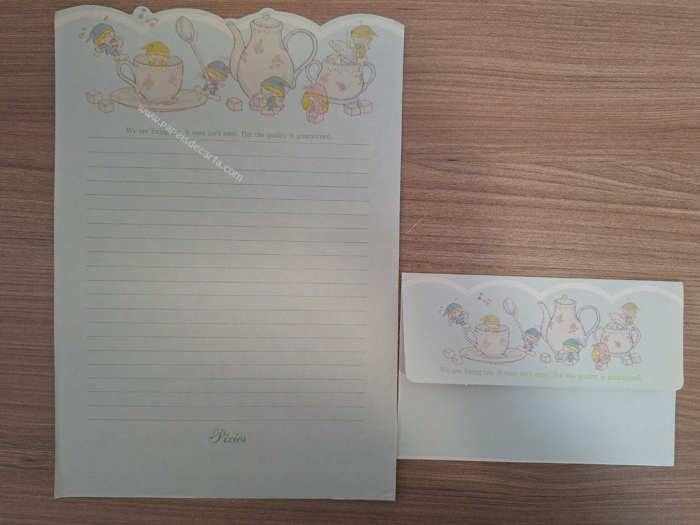 Conjunto de papel de carta antigo com 1 folha e 1 envelope.