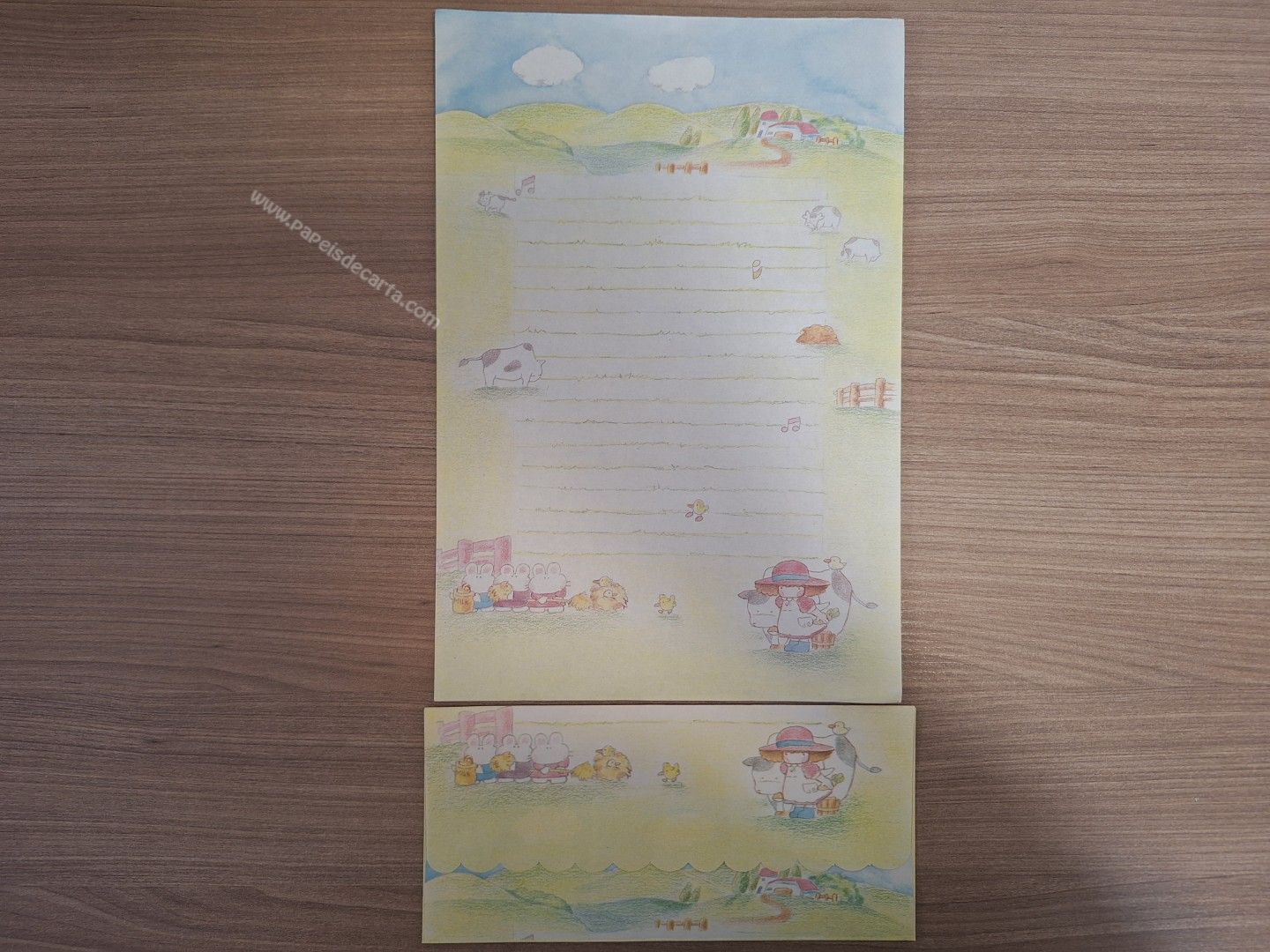 Conjunto de papel de carta antigo com 1 folha e 1 envelope.
