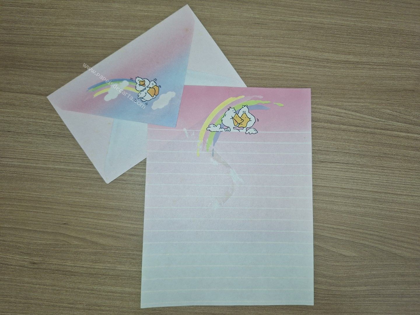 Conjunto de papel de carta antigo com 1 folha e 1 envelope. ** O ENVELOPE COLOU NO PAPEL E QUANDO FUI TIRAR, FICOU MARCADO. VER FOTO.