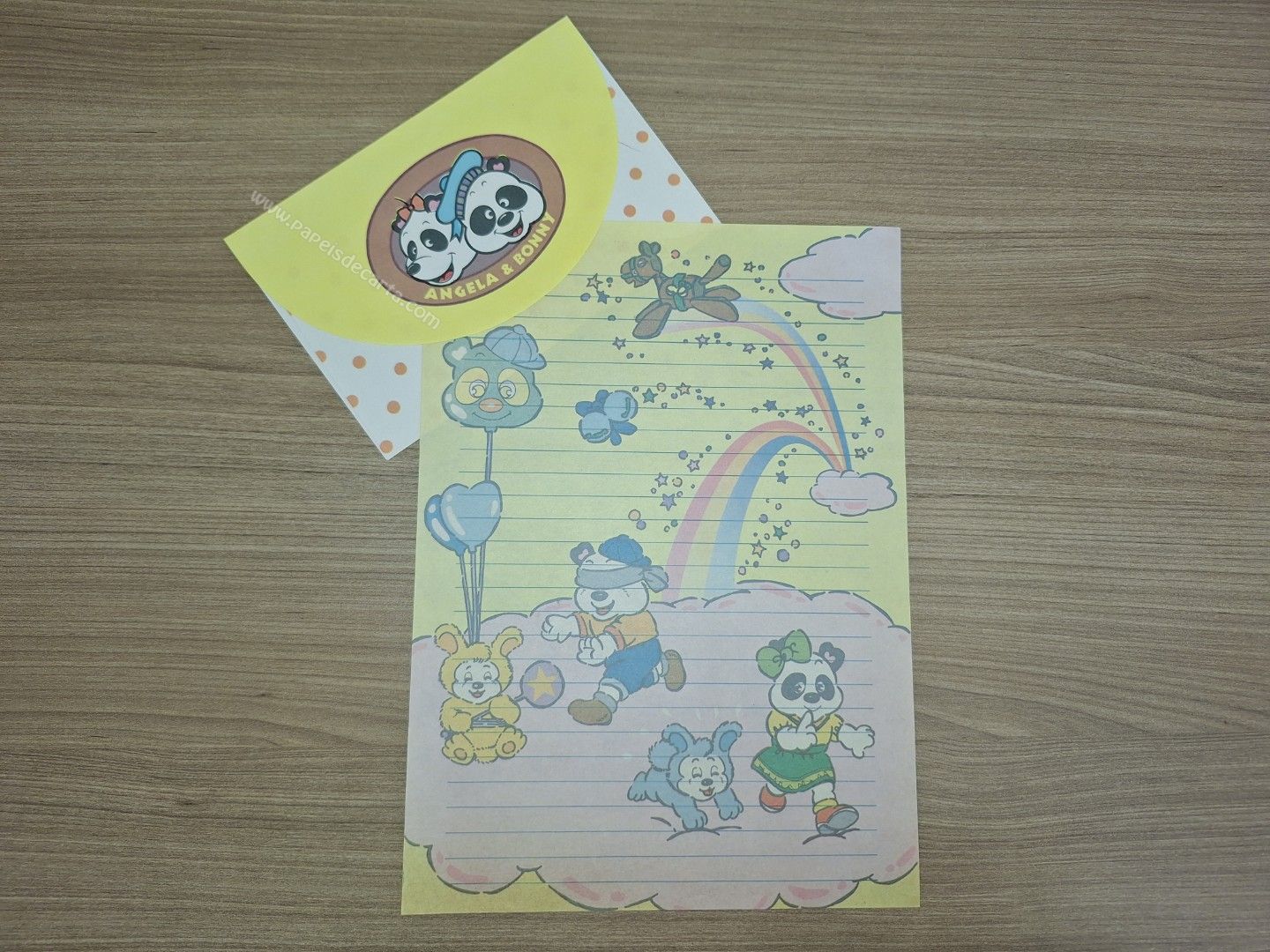 Conjunto de papel de carta antigo com 1 folha e 1 envelope.
