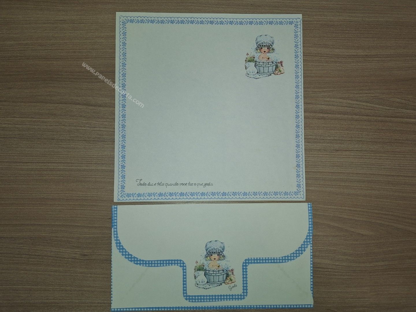 Conjunto de papel de carta antigo com 1 folha e 1 envelope. Tamanho médio.