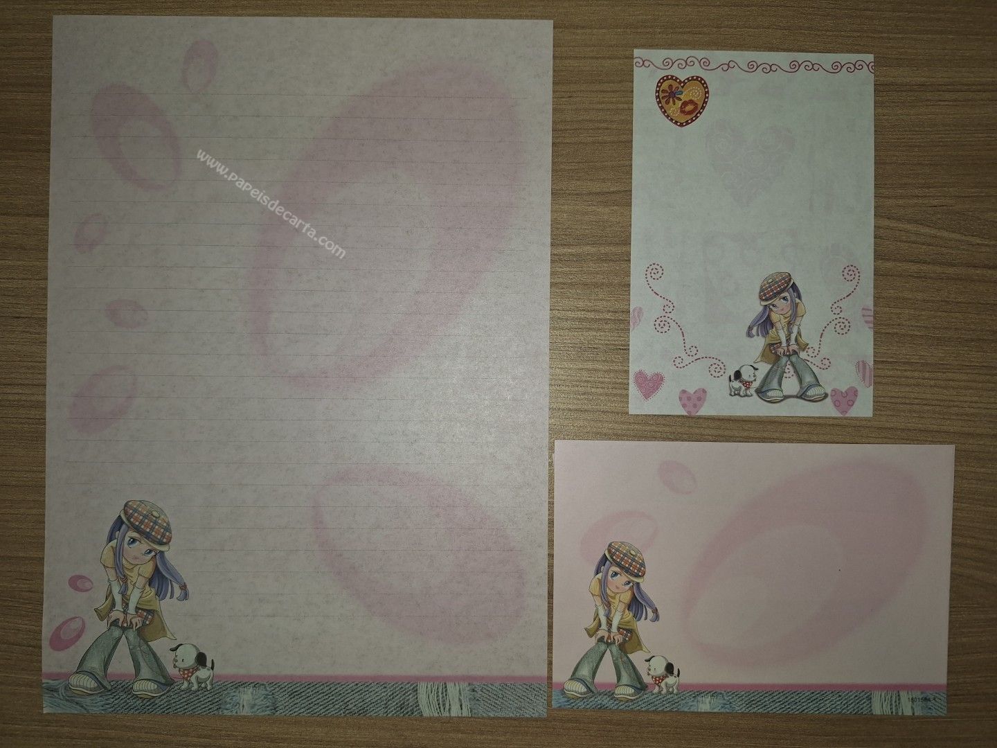 Conjunto de papel de carta antigo com 1 folha, 1 notinha e 1 envelope. Tamanho um pouco maior que o médio. Medidas: Larg:17,5cm x alt: 24,3cm.