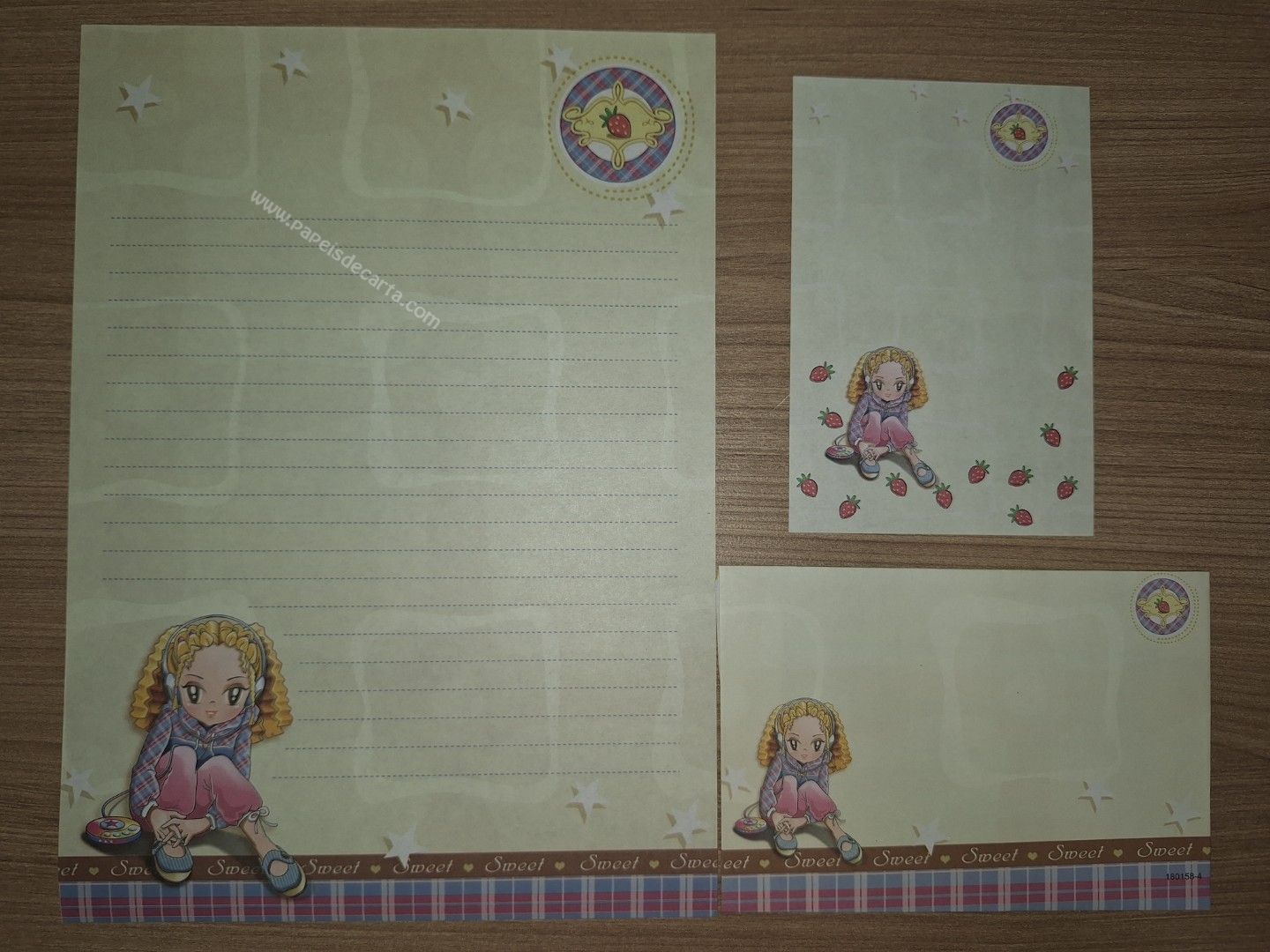 Conjunto de papel de carta antigo com 1 folha, 1 notinha e 1 envelope. Tamanho um pouco maior que o médio. Medidas: Larg:17,5cm x alt: 24,3cm.