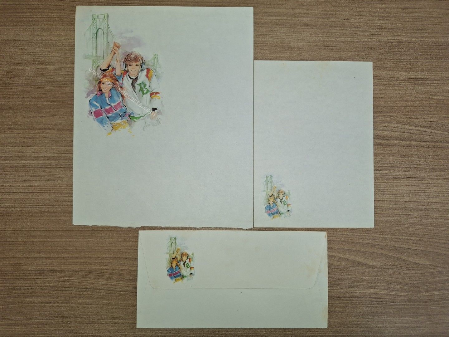 Conjunto de papel de carta antigo com 2 folhas e 1 envelope. Tamanho médio. ** O PAPEL MAIOR ESTÁ CORTADO NA PARTE DE BAIXO. VER FOTO. **