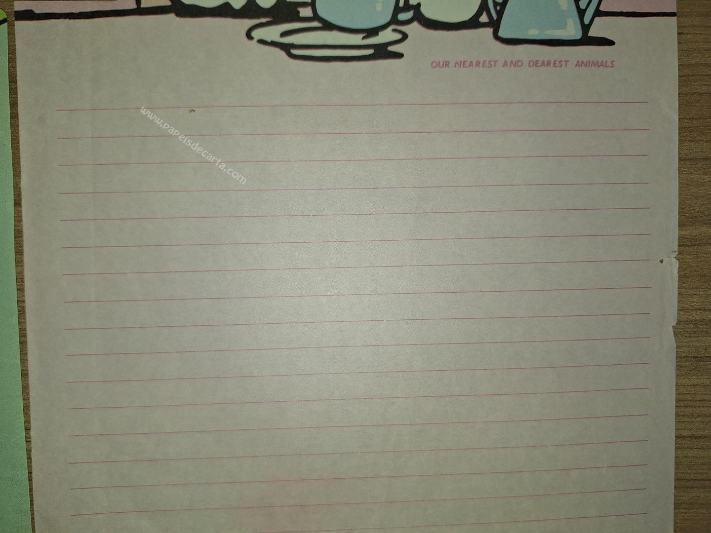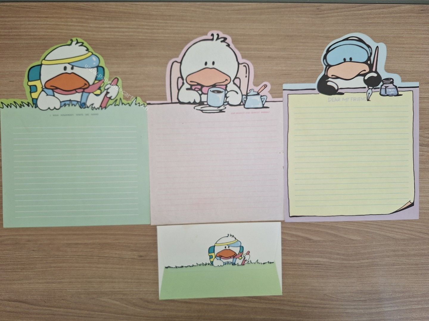 Conjunto de papel de carta antigo com 3 folhas e 1 envelope. Tamanho médio. ** O PAPEL ROSA ESTÁ RASGADINHO. VER FOTO. **
