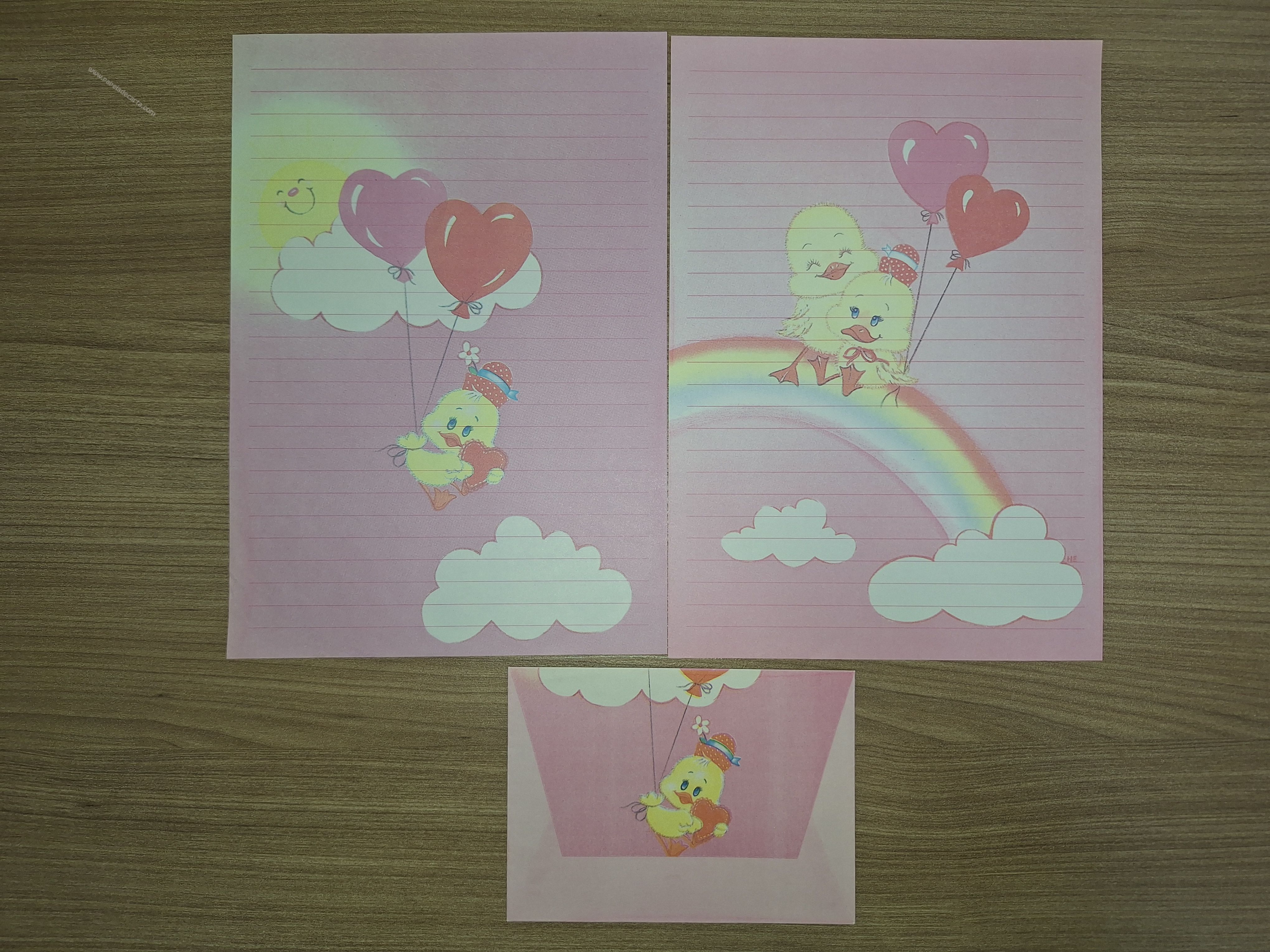 Conjunto de papel de carta antigo com 2 folhas e 1 envelope. Tamanho médio.