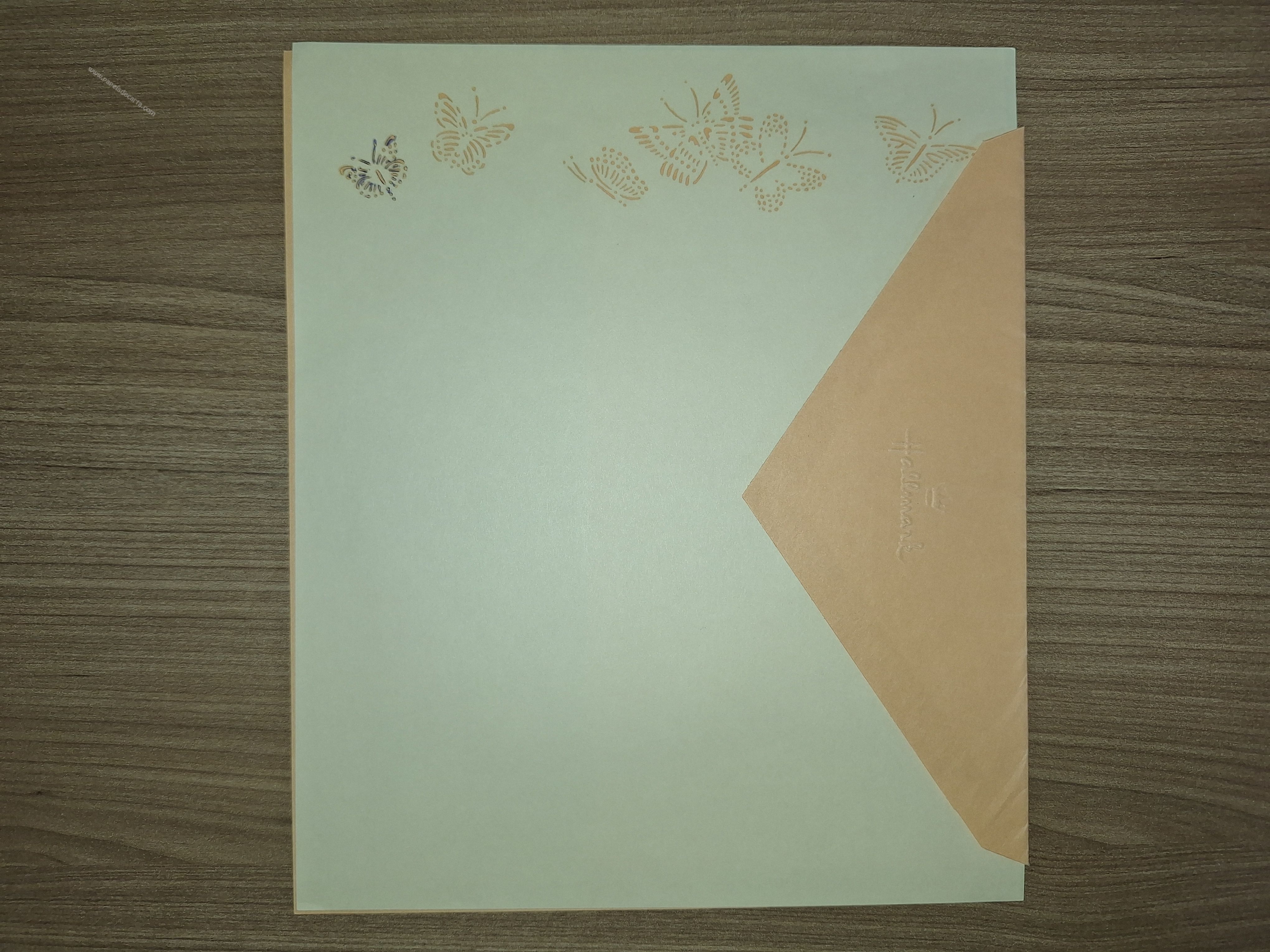 Conjunto de papel de carta antigo com 1 folha e 1 envelope. Tamanho médio. ** O ENVELOPE ESTÁS COLADO NO PAPEL.