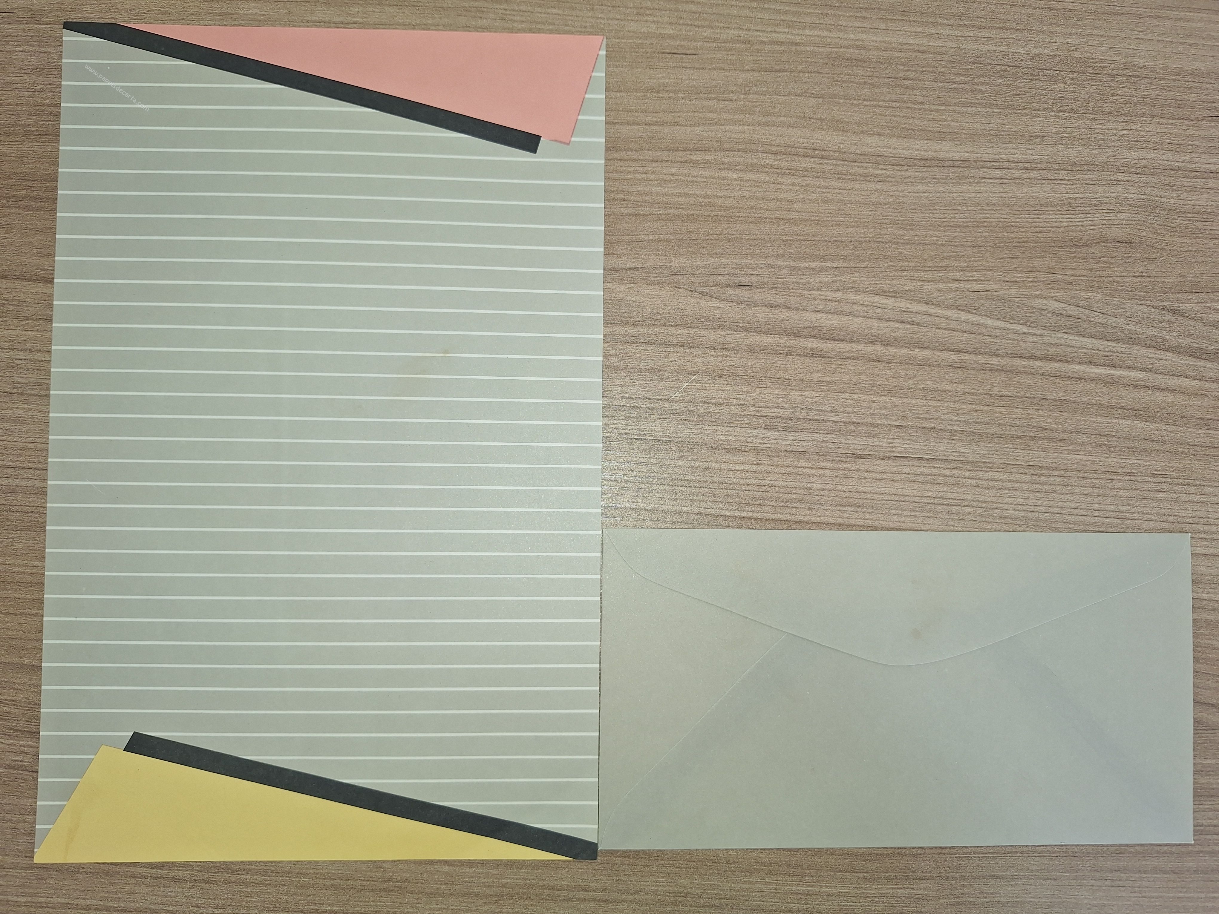 Conjunto de papel de carta antigo com 1 folha e 1 envelope. Tamanho um pouco maior que o médio.