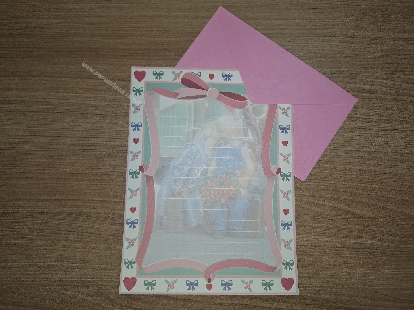Conjunto de papel de carta antigo com 1 folha e 1 envelope. Tamanho médio.
